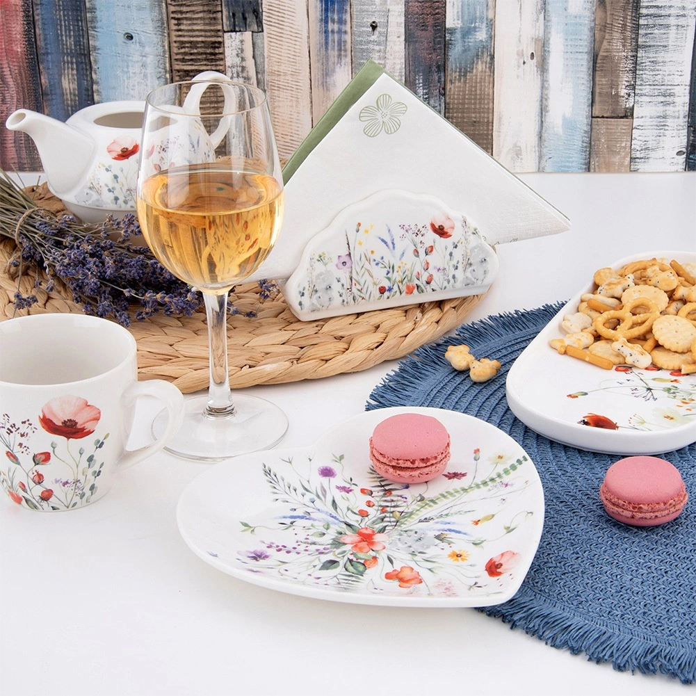Élégante petite assiette à dessert en forme de cœur, réalisée en porcelaine de qualité avec un motif de fleurs des champs. Idéale pour servir des desserts et des en-cas, compatible lave-vaisselle et micro-ondes, elle complète à merveille toute vaisselle de table et séduit par son design spectaculaire.