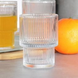 La texture verticale du verre assure une tenue confortable et confère aux verres un look moderne qui se distingue à chaque service.