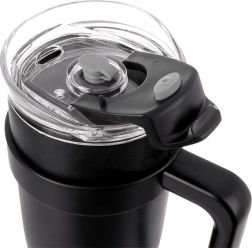 Le couvercle transparent possède une ouverture de boisson refermable et une ouverture séparée pour la paille métallique avec bouchon en silicone. Il minimise les renversements et améliore le confort de boisson.