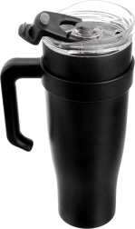 L’anse solide assure une prise en main sûre même à pleine capacité de 1,2 l. Grâce à la base rétrécie, le mug s’insère facilement dans les porte-gobelets de voiture. Conçu pour être transporté en position verticale.