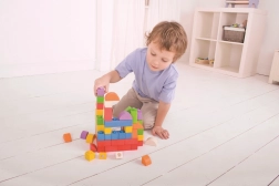 Grâce aux connecteurs en plastique, les blocs s’assemblent facilement, stimulant la créativité et la motricité des enfants.
