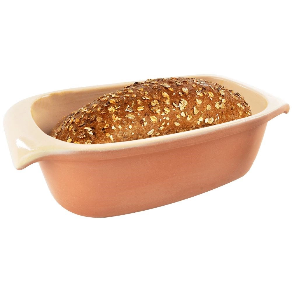 Pratique moule en céramique pour la cuisson du pain avec couvercle, dimensions 33 × 16 × 16 cm et capacité de 2,7 l, assurant une cuisson uniforme et une croûte croustillante. Grâce à la céramique naturelle, la chaleur est parfaitement conduite, rendant la cuisson économique et homogène. Le moule possède un intérieur émaillé pour un nettoyage facile, des poignées confortables pour un transport sécurisé et résiste à des températures jusqu’à 280 °C.
