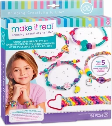 Créez des bijoux originaux pleins de couleurs et d’ondes positives avec le coffret Make It Real Good Vibes. La boîte contient tout le nécessaire pour fabriquer des bracelets stylés – fils de coton, cordon métallisé, perles, breloques et instructions simples. Un cadeau créatif idéal pour les enfants et les débutants.