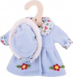 Manteau bleu avec chapeau. Les vêtements peuvent être habillés sur des poupées de taille 28 cm. L'emballage comprend également un cintre. Principales caractéristiques : convient aux poupées de 28 cm, développe la motricité de manière ludique, y compris le cintre
