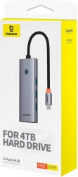 Baseus UltraJoy hub USB‑C 5‑en‑1 (4× USB 3.0, PD 100 W) gris