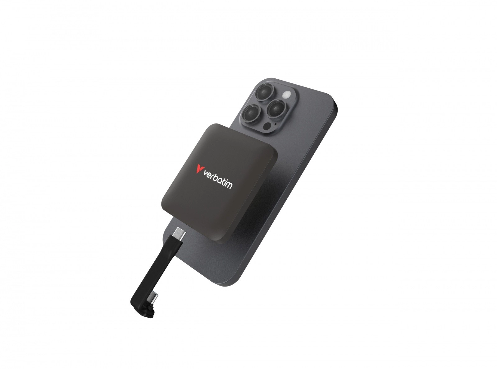 Verbatim SnapBack est un SSD externe magnétique moderne qui, grâce à la compatibilité MagSafe, se fixe fermement à l’arrière du téléphone. Une fixation stable sans supports ni enchevêtrement de câbles en fait le choix parfait pour le tournage en extérieur, le live streaming et les longues séances photo. La prise en charge de Apple ProRes 4K/60 i/s permet d’enregistrer directement sur le disque et de libérer la mémoire du téléphone.
