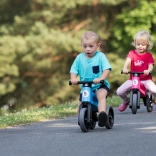 La structure en plastique résistant et sans substances nocives avec des jonctions lisses est sûre même pour les plus petits. L’angle de rotation limité de la fourche empêche la surtorsion du guidon et les extrémités élargies des poignées protègent les mains des enfants. Son faible poids de 1,9 kg facilite le portage et la maniabilité.