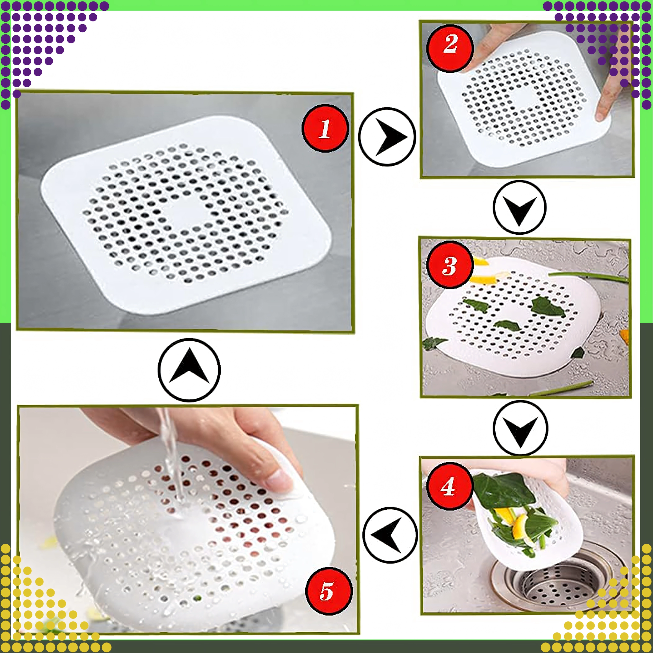 - Protection anti-obstruction : retient cheveux et restes alimentaires, améliore l’écoulement et l’hygiène