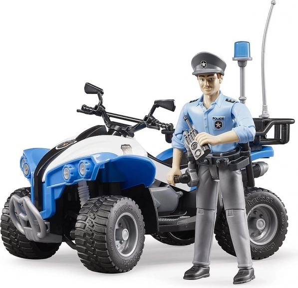 Les détails uniques de ce quad comprennent un emblème de police, une série d'accessoires de police comme un chapeau, une ceinture ou un pistolet, et aussi la possibilité d'insérer d'autres figurines BRUDER dans le siège. Tout cela en haute qualité de matériaux, fabriqué en Allemagne.