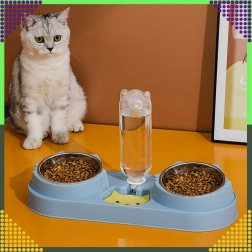 Cette gamelle double avec abreuvement automatique est idéale pour chiens et chats. Deux bols amovibles en acier inoxydable (220 ml chacun) permettent de servir séparément nourriture humide et sèche, tandis que le distributeur par gravité réapprovisionne en continu le réservoir d’eau. La base en plastique durable, d’un élégant bleu, est stable et facile à entretenir.