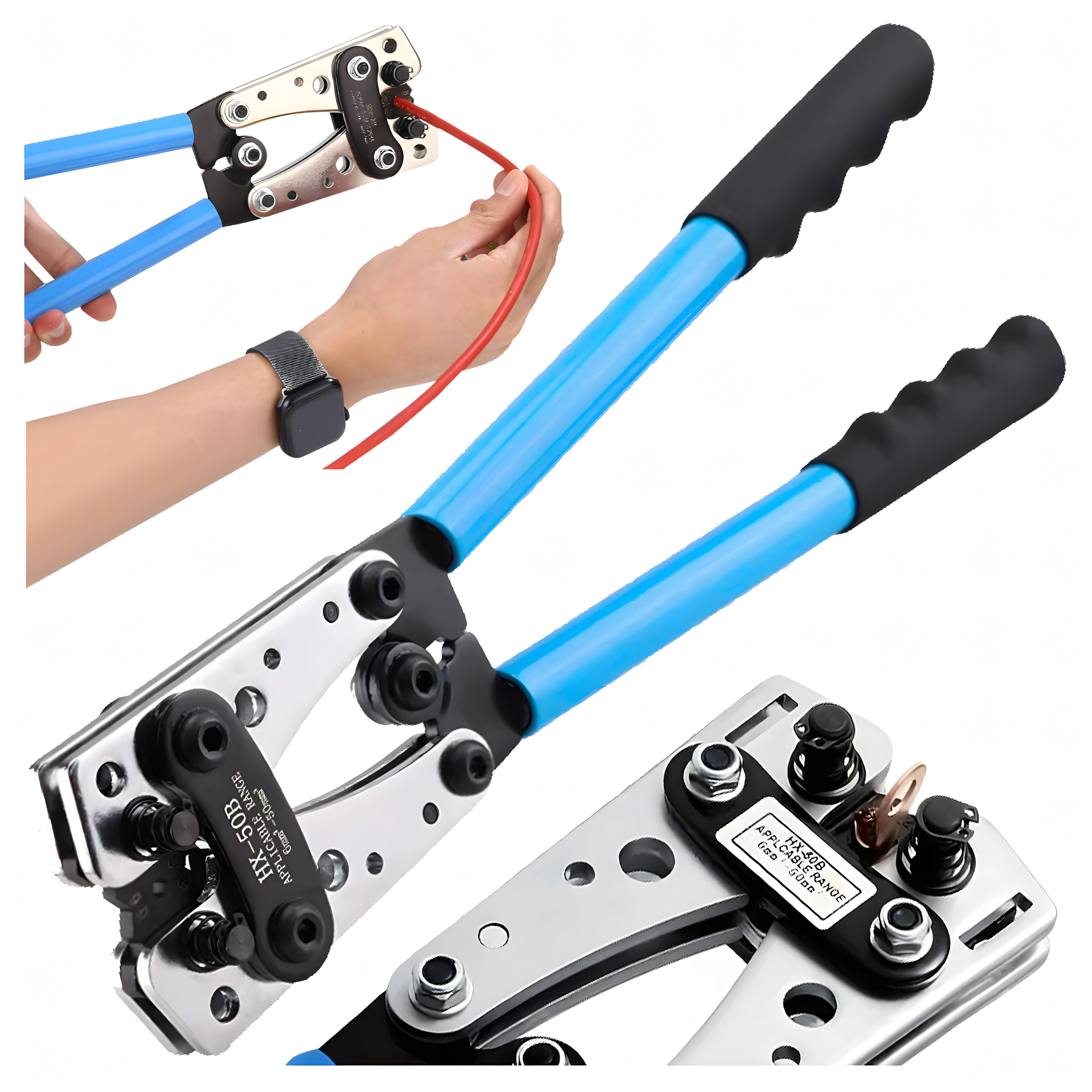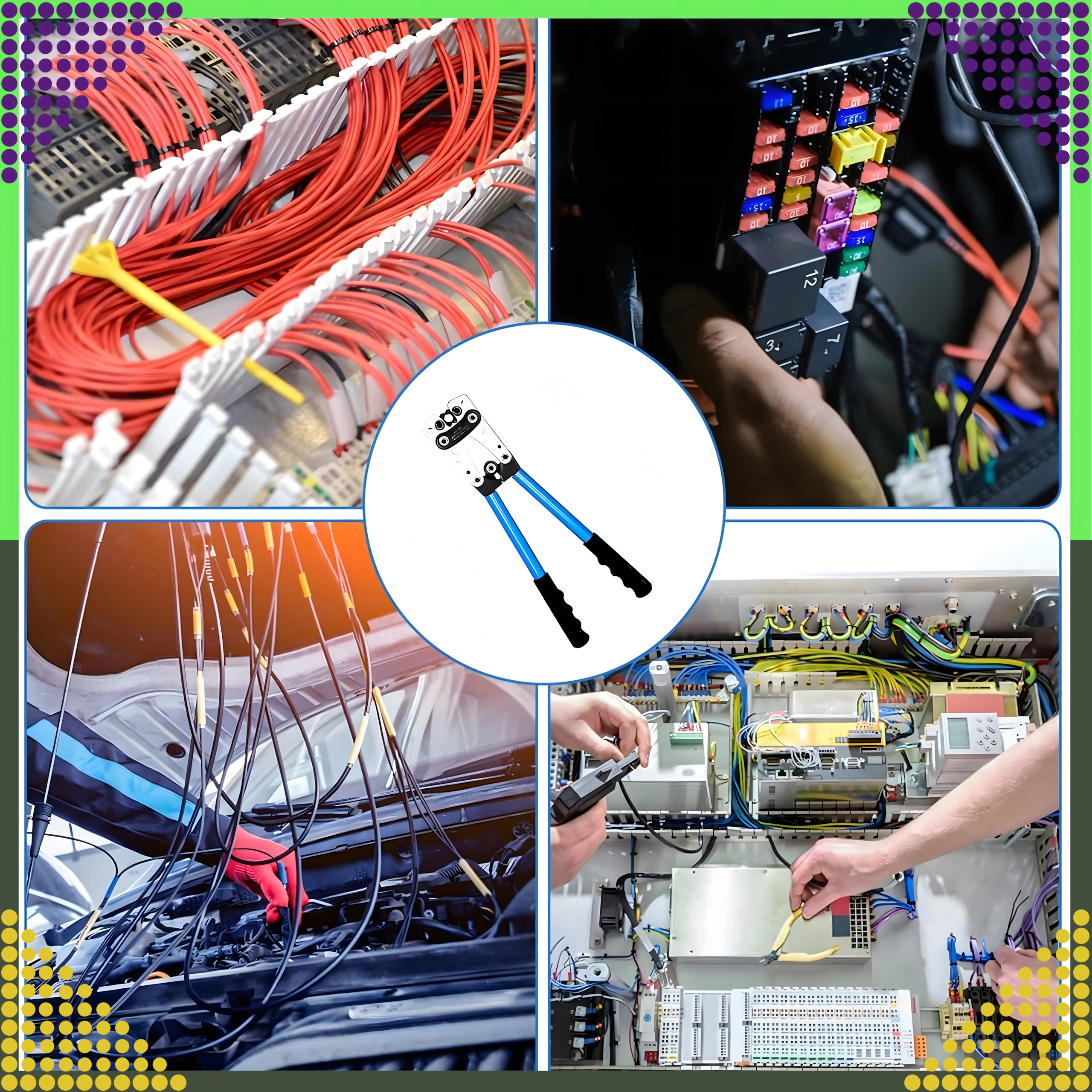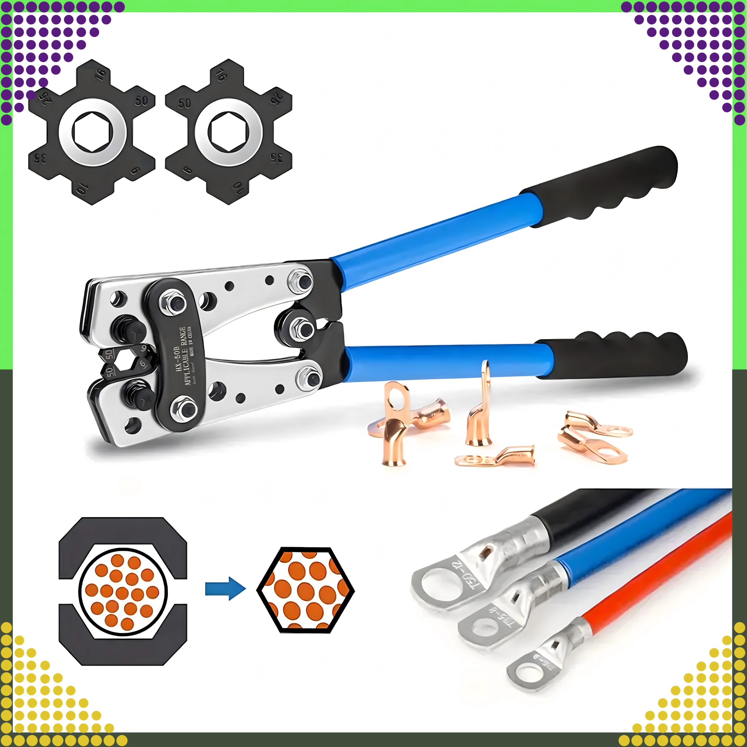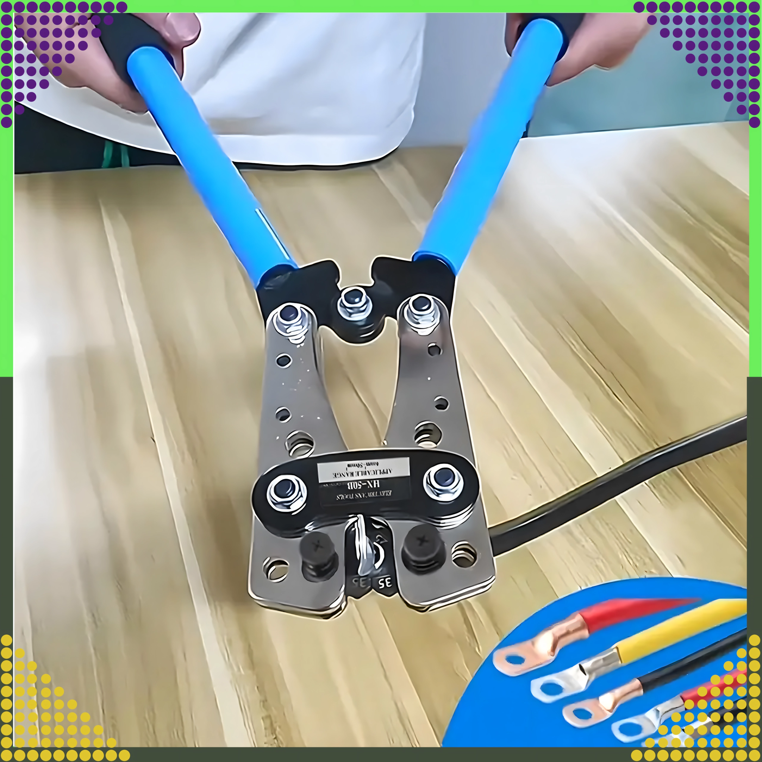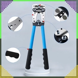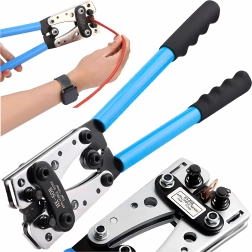 La construction en acier lourde avec de longs bras et des poignées antidérapantes augmente le confort et la sécurité au travail, que ce soit dans les armoires de distribution, à l’atelier ou sur chantier. L’outil convient aux cosses en cuivre et en aluminium ainsi qu’aux embouts, idéal pour les électriciens, mécaniciens et pour un usage hobby exigeant.