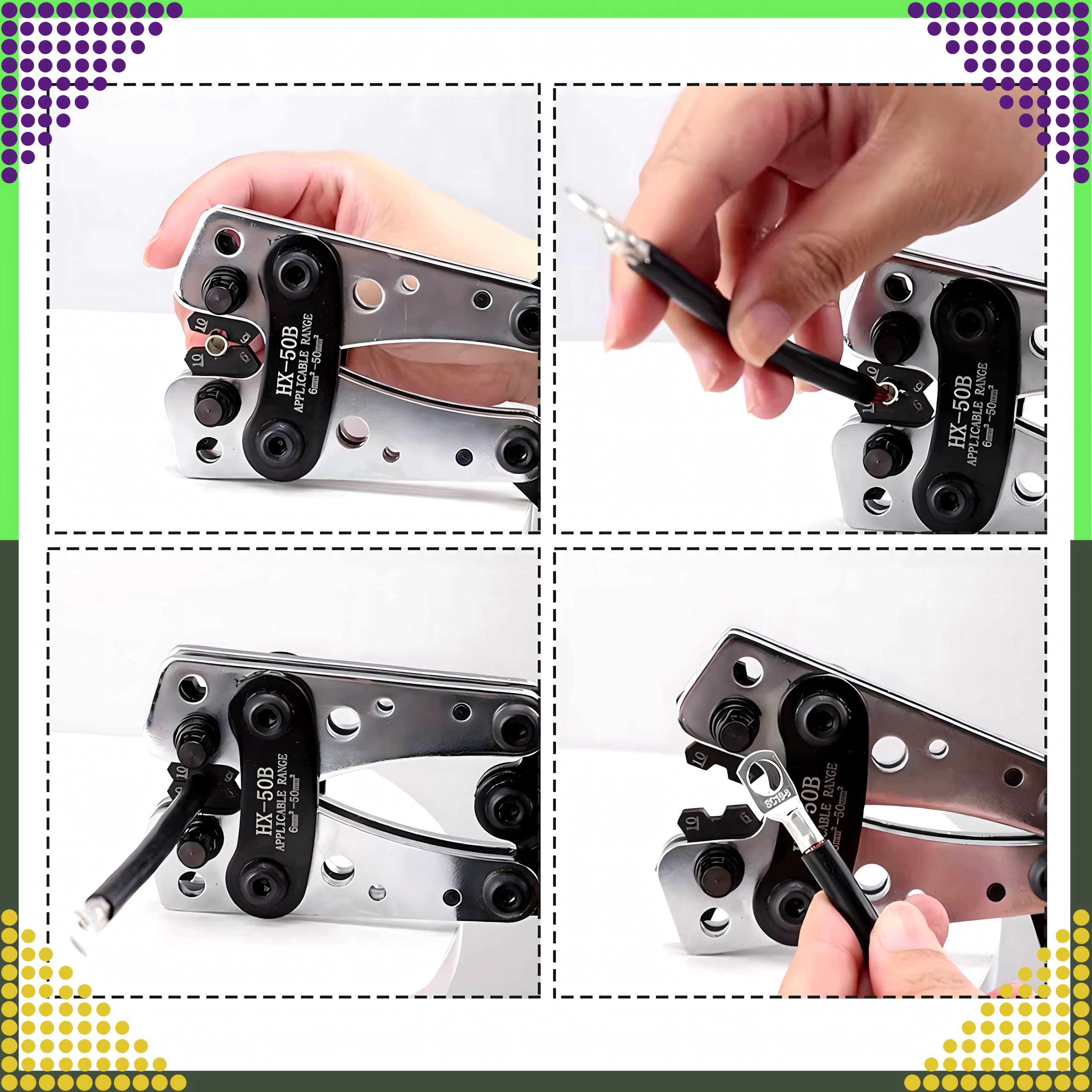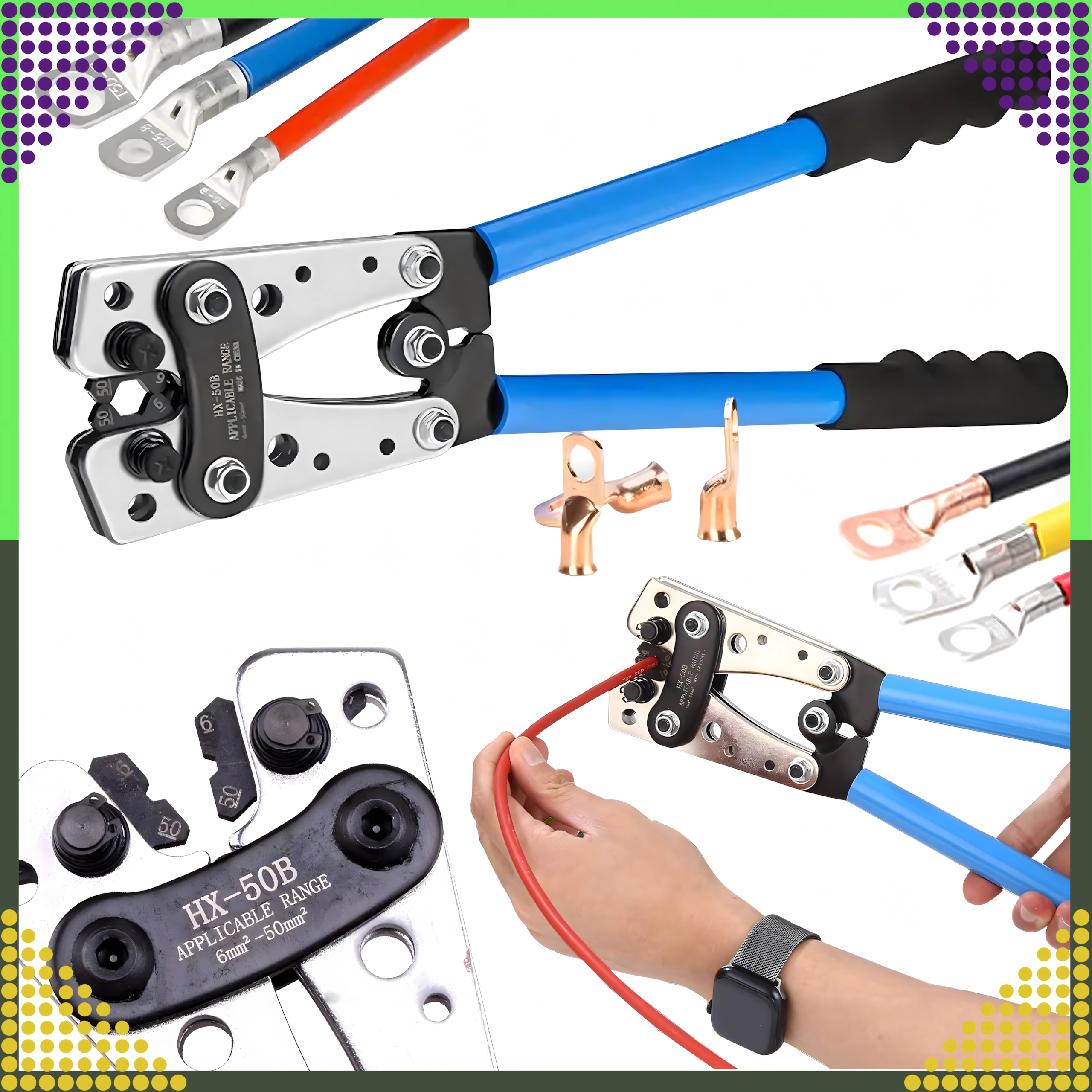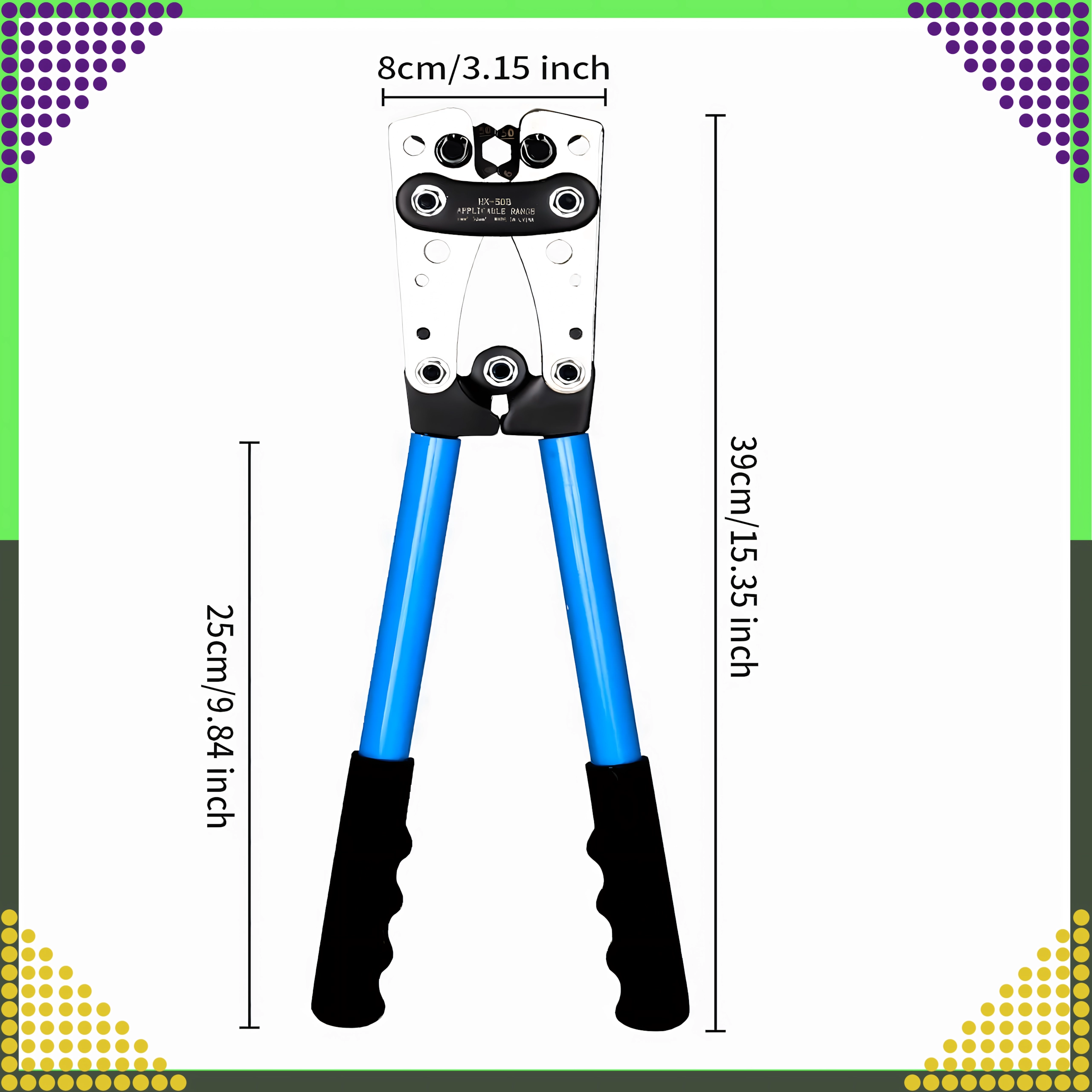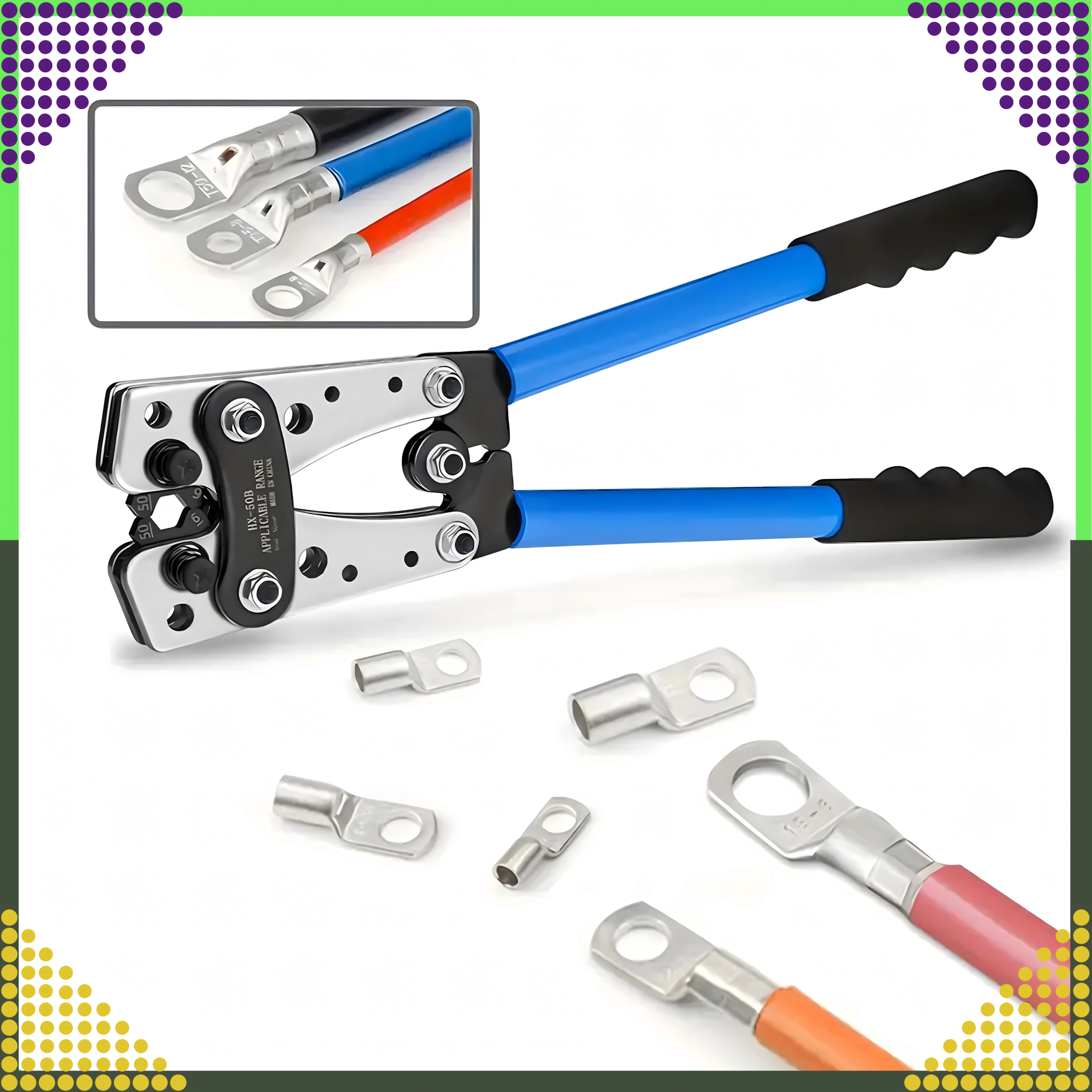 La construction en acier lourde avec de longs bras et des poignées antidérapantes augmente le confort et la sécurité au travail, que ce soit dans les armoires de distribution, à l’atelier ou sur chantier. L’outil convient aux cosses en cuivre et en aluminium ainsi qu’aux embouts, idéal pour les électriciens, mécaniciens et pour un usage hobby exigeant.