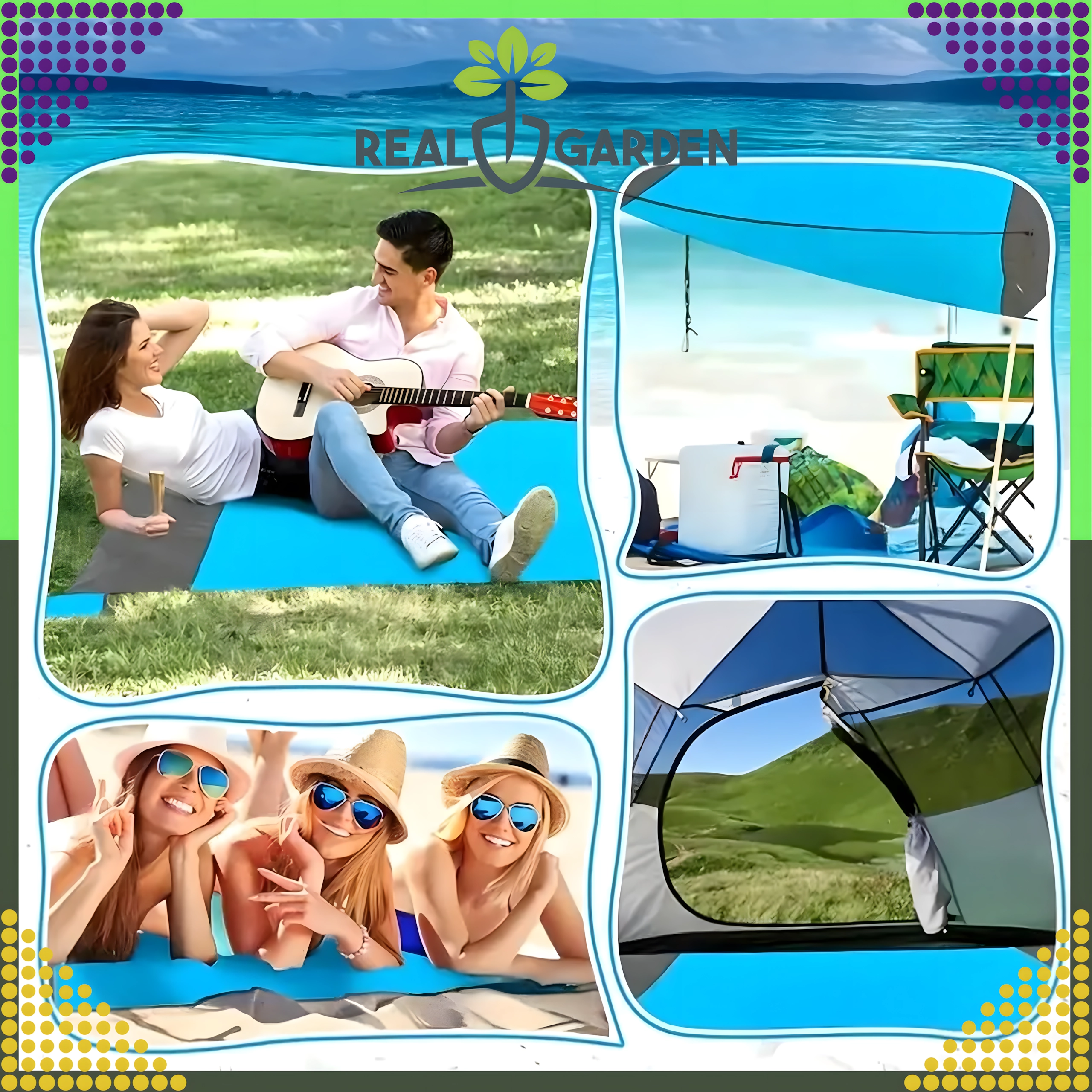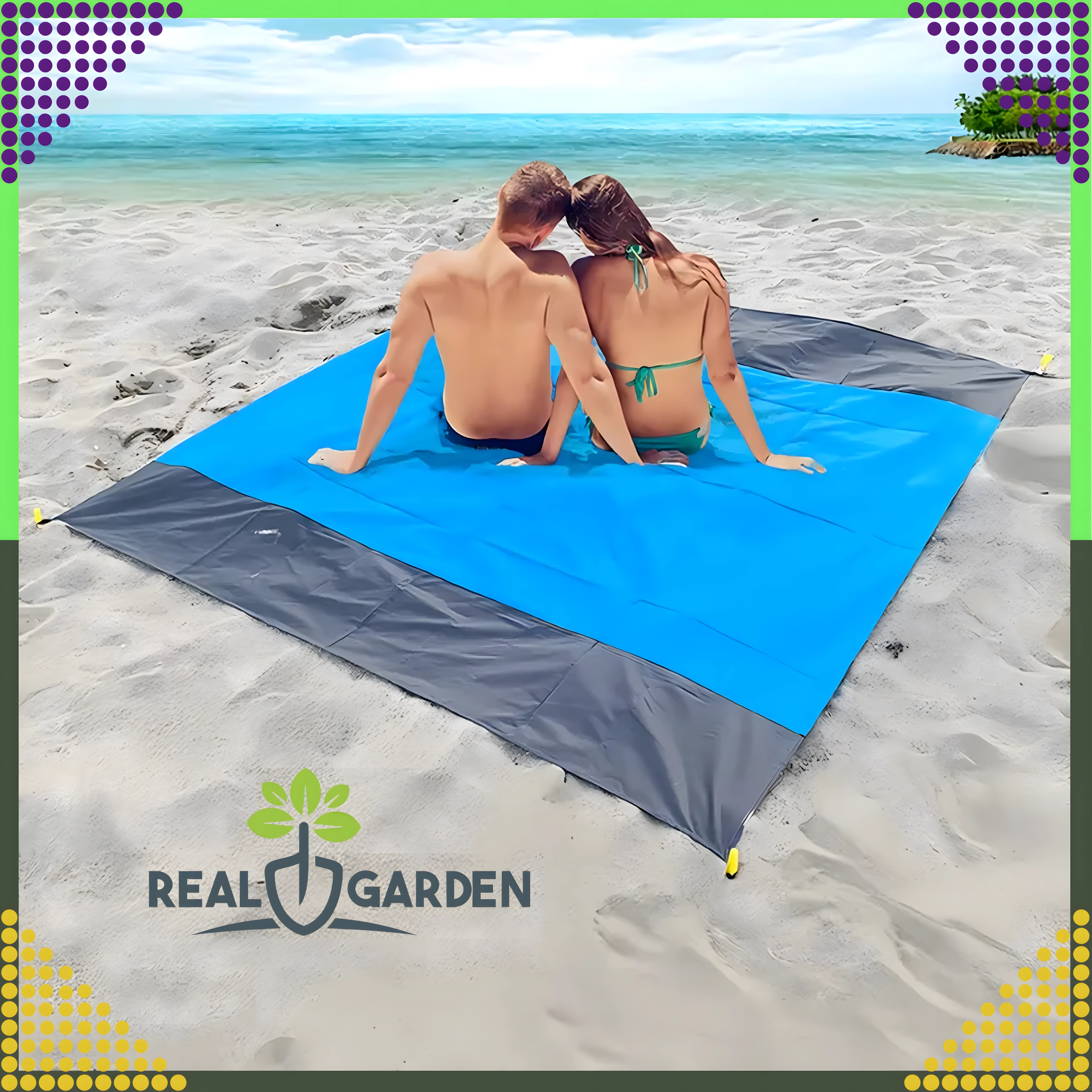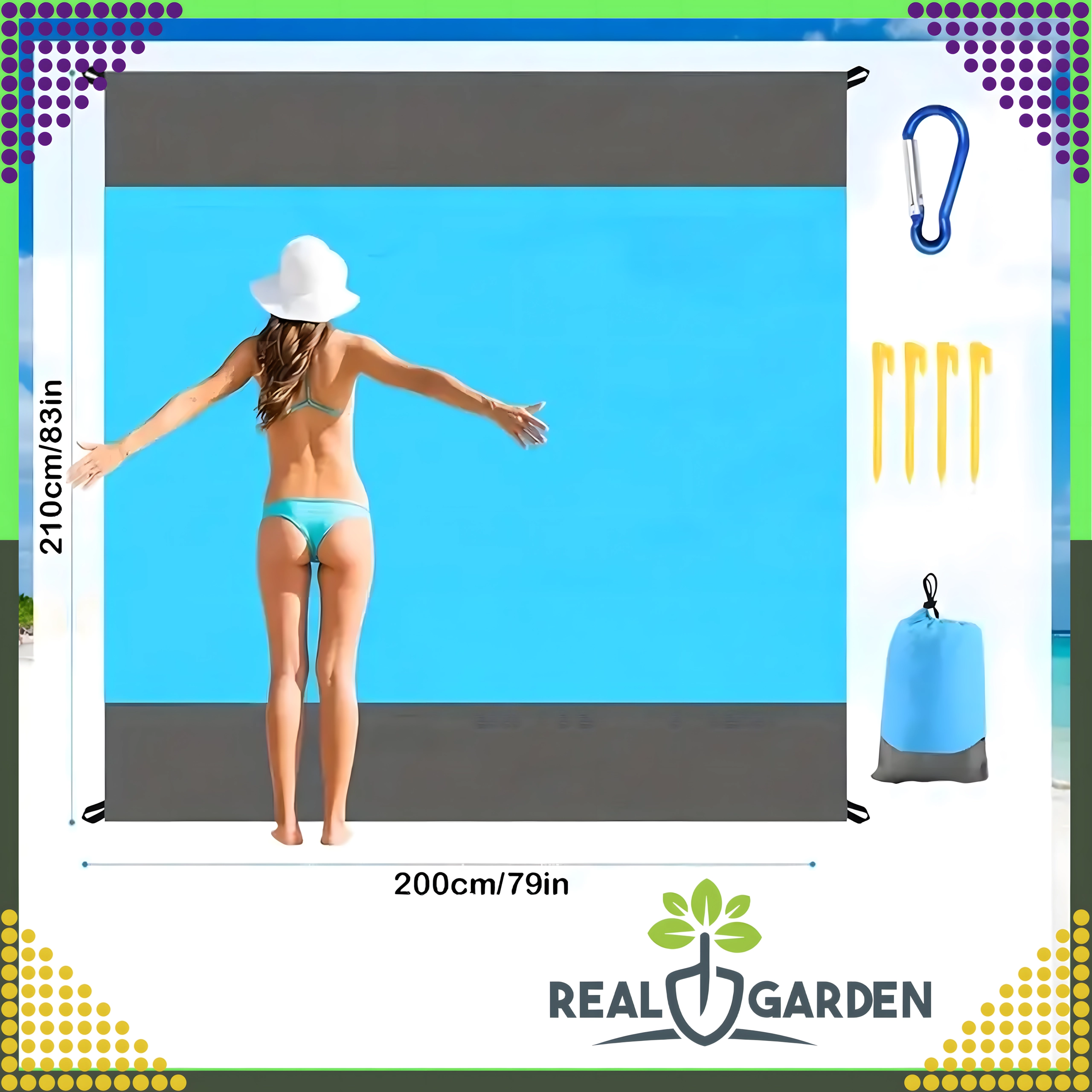 Couverture de plage/pique-nique pratique et confortable de 210 × 200 cm, idéale pour la plage, le pique-nique et le camping. Elle est imperméable, légère, facile à plier et grâce aux piquets/attaches reste bien en place. Inclut une housse pratique. La couverture protège de l’humidité, se nettoie facilement et offre assez d’espace pour toute la famille.