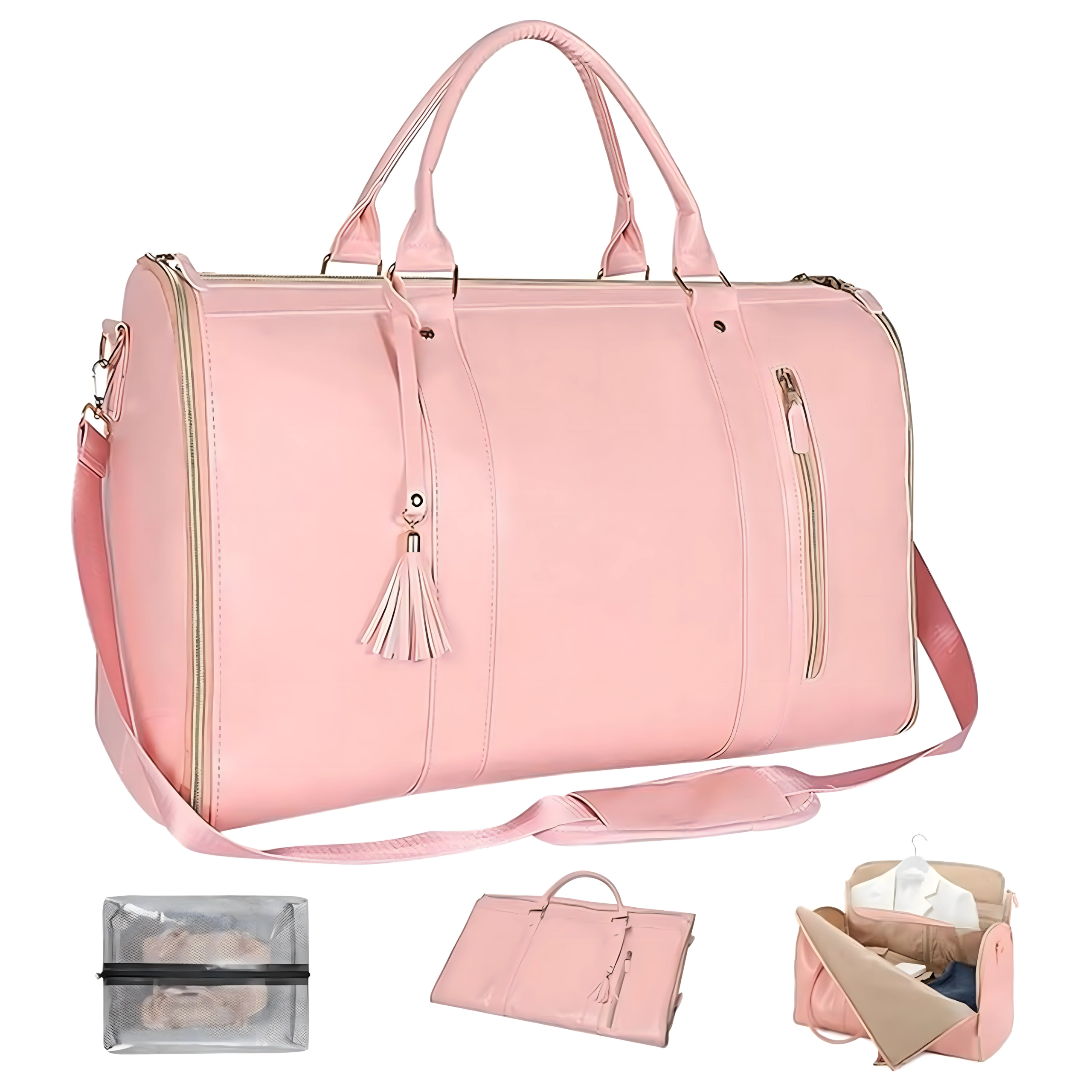 Sac de voyage pratique et stylé 2‑en‑1 d’une capacité de 55 L combinant un grand weekender/duffel et une housse intégrée pour costume ou robe. Il est imperméable, résistant et pliable, idéal pour les voyages d’affaires, les escapades du week‑end et le business travel – il garde vos vêtements sans faux plis et organise tout de manière claire.