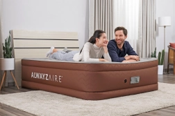 Profitez d’un sommeil réparateur avec le matelas gonflable double BESTWAY ALWAYZAIRE. La technologie intelligente AlwayzAire surveille en continu et ajuste la pression, de sorte que le matelas reste stable et agréablement ferme, sans regonflage gênant pendant la nuit. La pompe électrique intégrée (220–240 V) assure un gonflage rapide d’environ 3 minutes et un dégonflage tout aussi simple après usage.