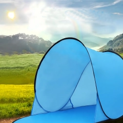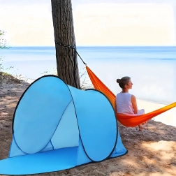 La structure pop-up se déploie d’elle-même et offre instantanément de l’ombre sans montage complexe de mâts.