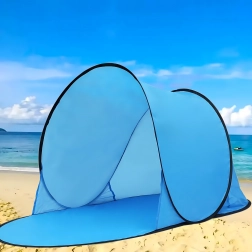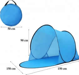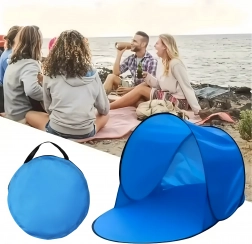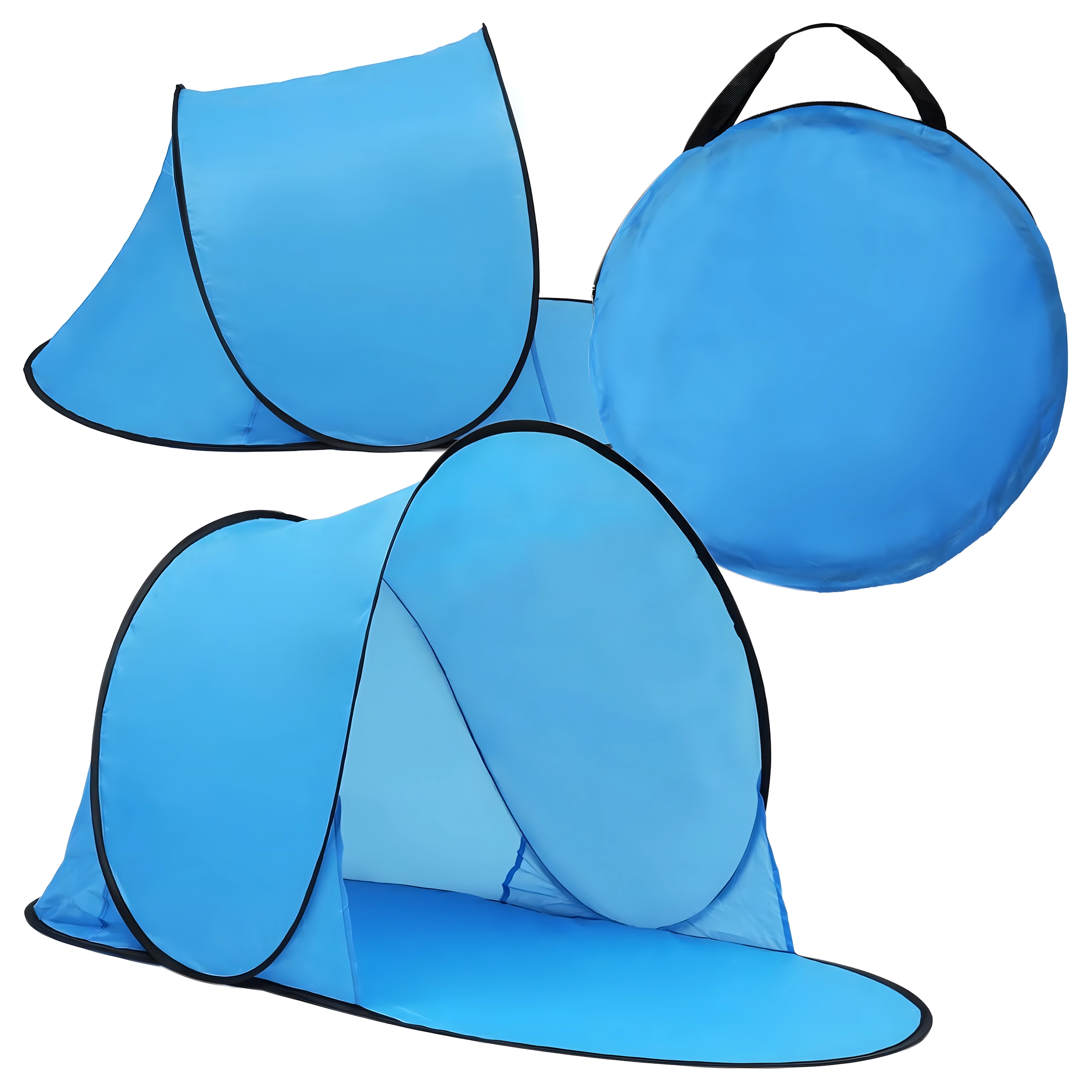 Tente de plage pop-up pratique qui s’ouvre toute seule en quelques secondes. Offre une protection contre le soleil (UV), le vent et la petite pluie. Elle est légère, compacte et idéale pour la plage, le jardin et le pique-nique. Livrée avec un sac de transport et des piquets d’ancrage.