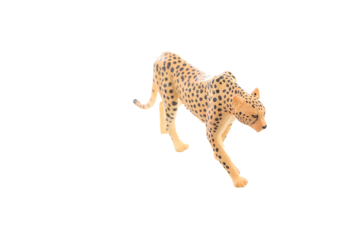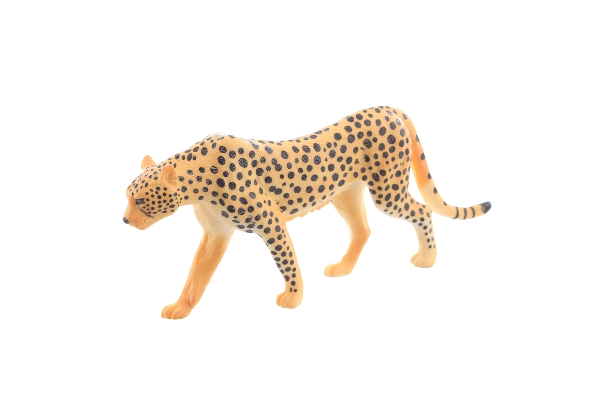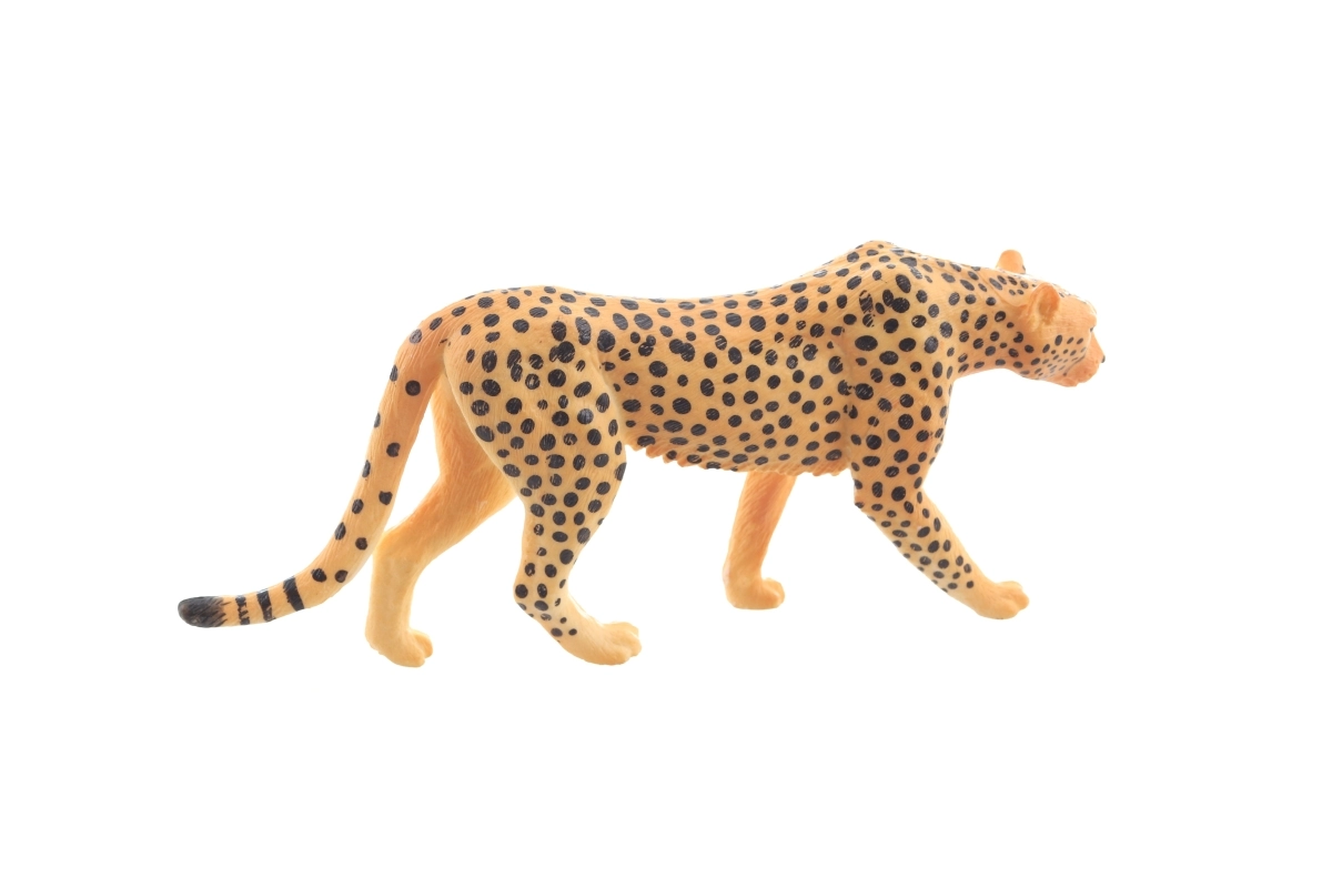 Figurine en plastique de léopard au rendu réaliste pour enfants dès 3 ans. Modèle en marche avec texture de pelage détaillée et taches typiques, idéal pour le jeu créatif, les activités éducatives et les vitrines de collection.