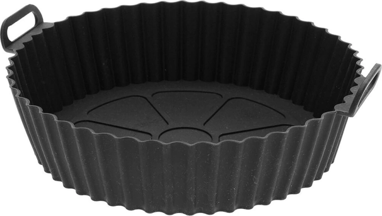 Pratique panier en silicone pour friteuse à air de 20,5 cm de diamètre, assurant une cuisson propre et confortable sans accrocher. Il est réutilisable, antiadhésif et, grâce aux poignées latérales, se place et se retire facilement. Convient pour Air Fryer, four, congélation et lave-vaisselle.