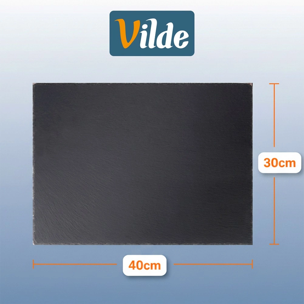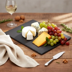 Élégante planche de service en ardoise de 40 × 30 cm pour une présentation stylée de fromages, charcuteries, desserts et entrées. Fabriquée en pierre naturelle, avec bords polis et patins antidérapants pour la stabilité et la protection de la table. Grâce à ses propriétés thermiques, la planche peut être préchauffée ou refroidie avant le service. Idéale pour la maison comme pour la restauration.