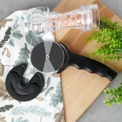 Coupe-pizza pratique avec disque rond en acier inoxydable et capuchon de protection, offrant une coupe confortable et sûre. Il possède une poignée ergonomique avec trou de suspension, coupe facilement même les pâtes épaisses et, grâce à sa roulette tranchante, divise la pizza en parts régulières. Matériaux durables, rangement sûr avec capuchon et entretien facile.
