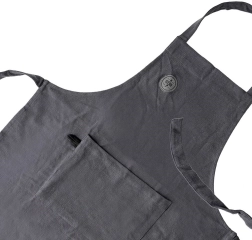 La matière en coton agréable et robuste, dans une teinte gris foncé, se lave jusqu’à 40 °C pour que le tablier reste comme neuf plus longtemps.