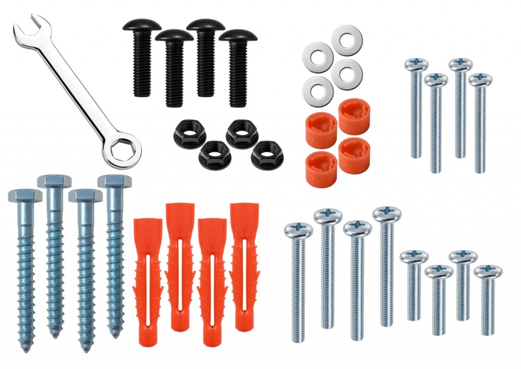 Comprend un assortiment de vis, chevilles, rondelles et clé – tout ce dont vous avez besoin pour un montage mural sûr et propre.