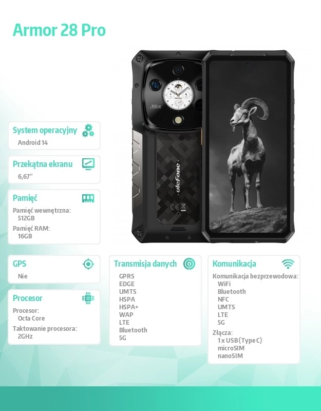 Emmenez votre smartphone là où d’autres n’osent pas. Ulefone Armor 28 Pro 5G combine résistance professionnelle et hautes performances dans un seul appareil. L’écran AMOLED 120 Hz est fluide et, grâce à sa luminosité de pointe de 2200 nits, parfaitement lisible même en plein soleil. Le verre Gorilla Glass Victus protège des rayures et des chutes, tandis que les certifications IP68, IP69K et MIL‑STD‑810H garantissent une résistance à l’eau, à la poussière, aux chocs et aux températures extrêmes.