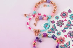 Avec 90 perles, 3 breloques et un élastique, conçois facilement des bracelets uniques pour chaque occasion.