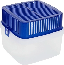 - Plastique ; partie supérieure bleue, partie inférieure transparente