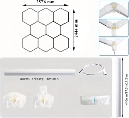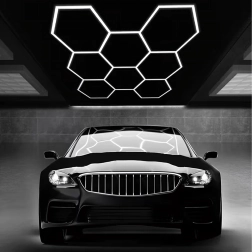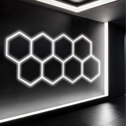 Apportez à votre espace un design moderne et un éclairage parfait. Le système LED hexagonal modulaire de dimensions 257 × 244 cm et d’une puissance de 280 W fournit une lumière blanche froide 6500K, idéale pour le garage, l’atelier, le studio de detailing, le bureau et la maison. Le motif en « alvéoles » assure un éclairage uniforme et un aspect attrayant.