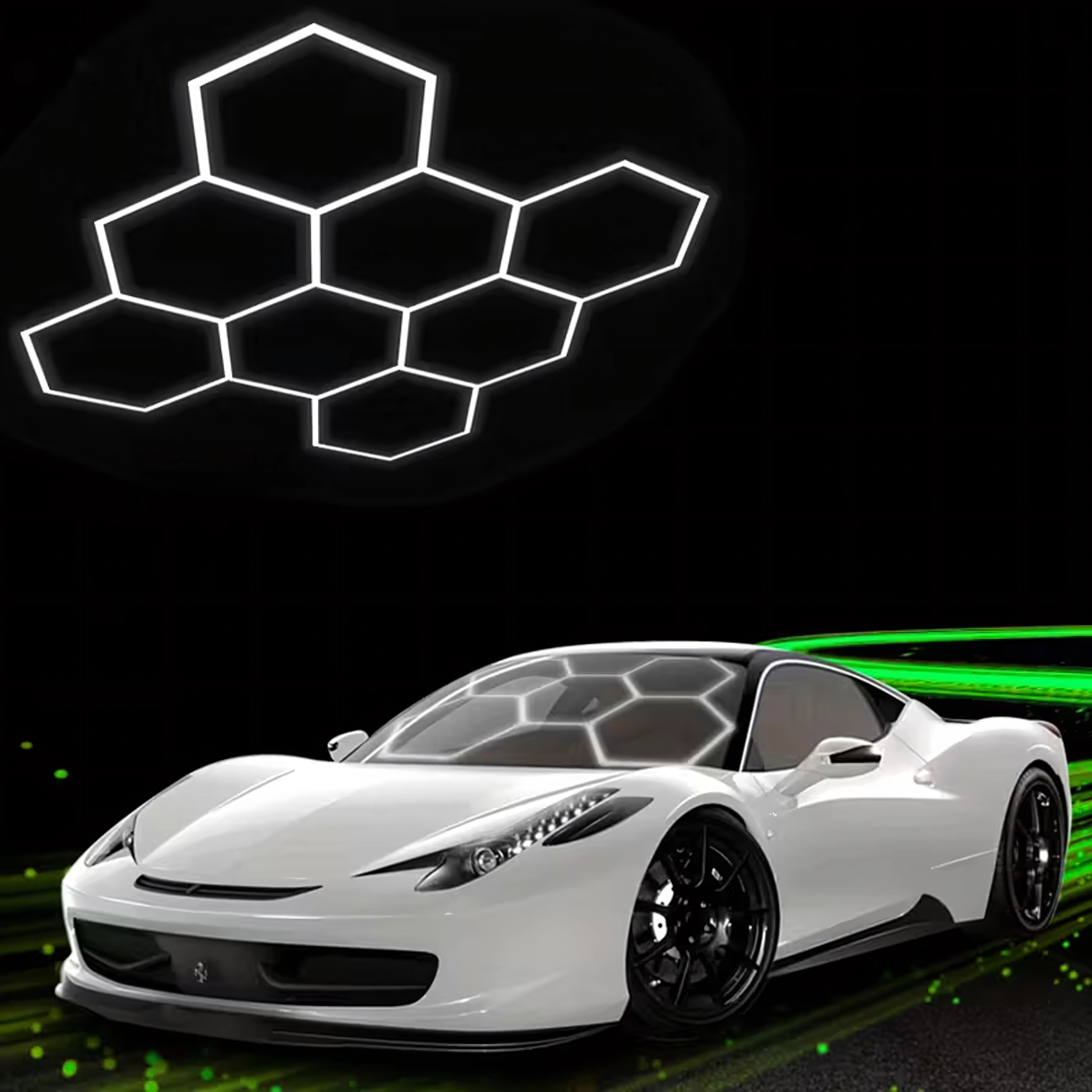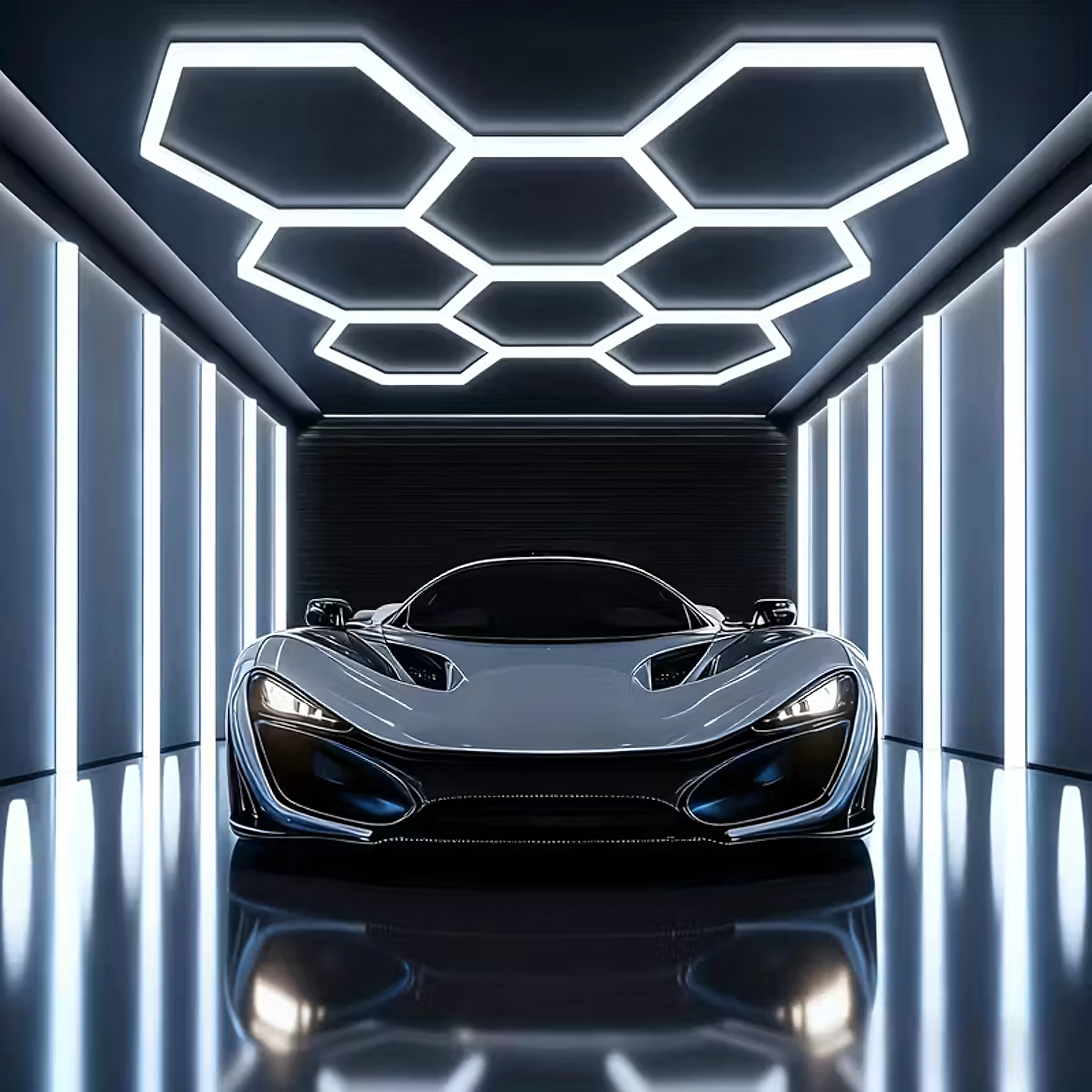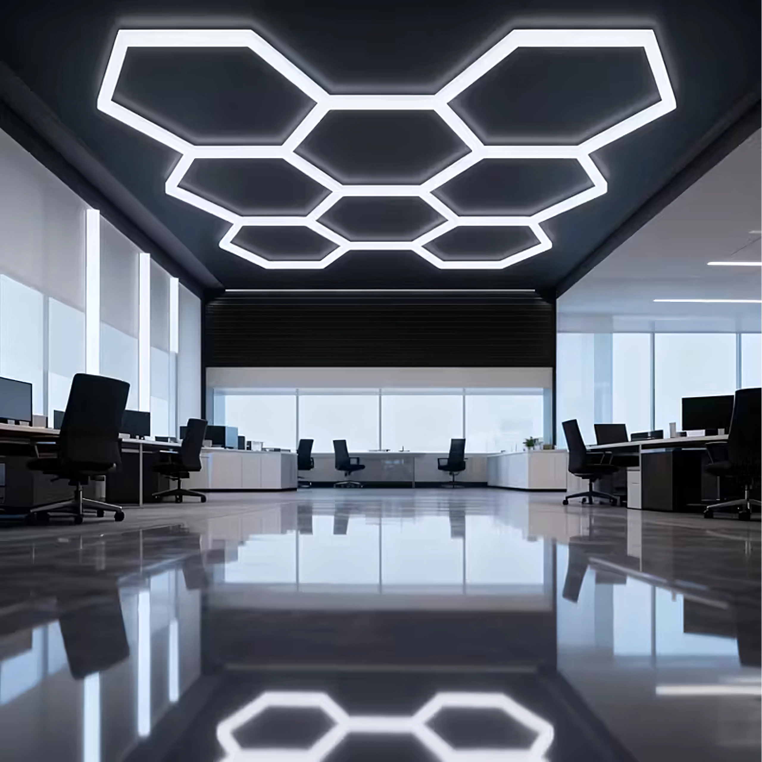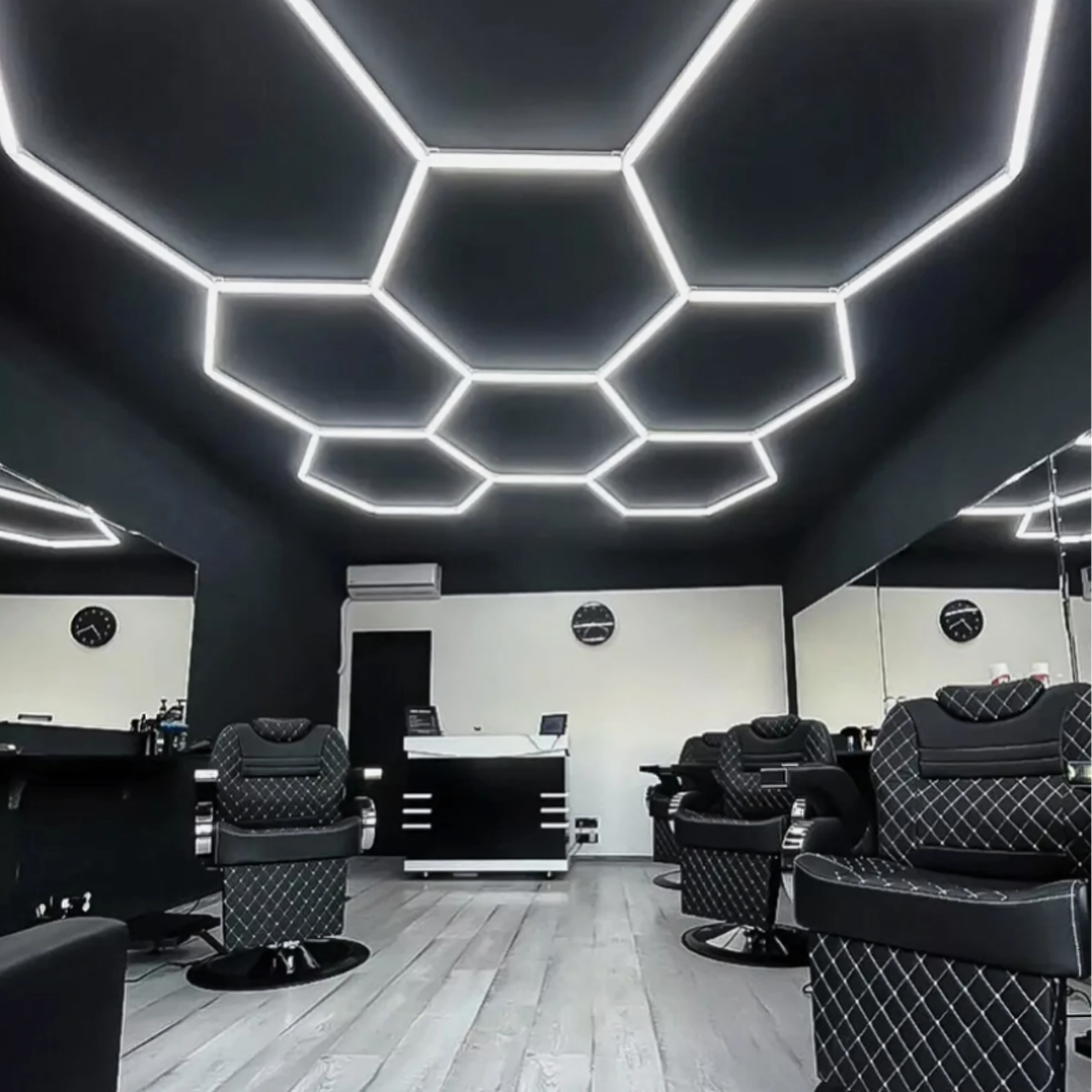 Le panneau LED hexagonal est une structure modulaire qui crée un motif spectaculaire inspiré des alvéoles. Grâce à sa puissance de 280 W et à sa température de couleur froide de 6500K, il offre une lumière intense, pure et homogène pour le travail et la mise en valeur de véhicules, de produits ou d’intérieurs. Un choix idéal pour garages, boxes de detailing, showrooms, bureaux et intérieurs contemporains.