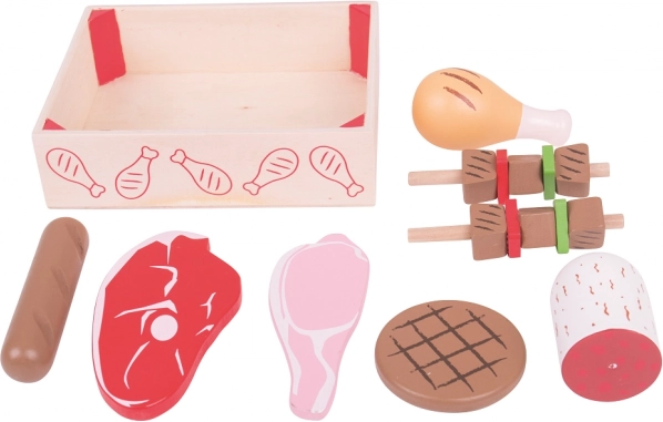 - Set réaliste de charcuterie et viandes en bois pour cuisines d’enfants