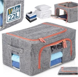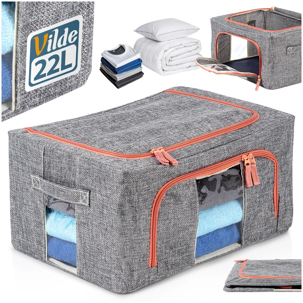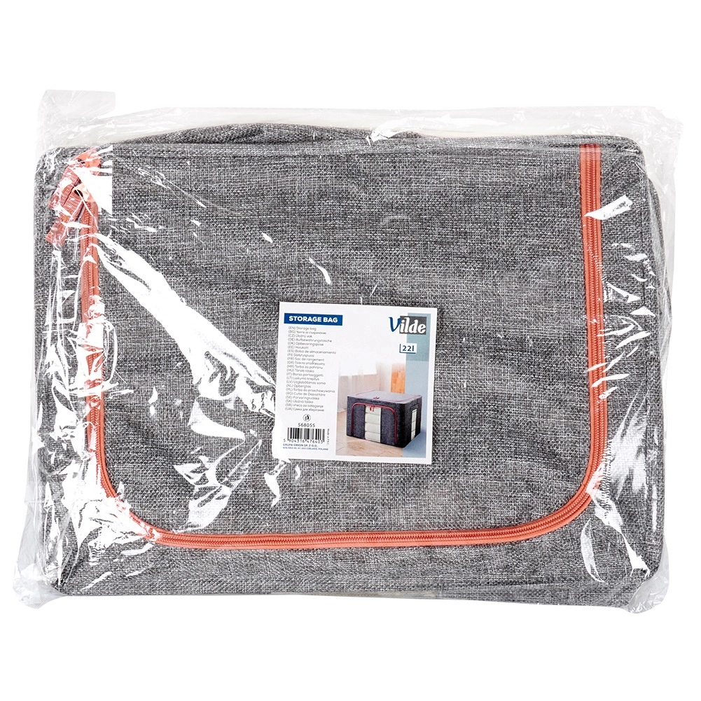 Pratique housse de rangement pour linge de lit, couvertures, oreillers et vêtements d’un volume de 22 l, protège les affaires de l’humidité, de la poussière et des mites. Grâce au zip supérieur et frontal, à la fenêtre transparente, à la structure rigide et aux deux poignées, elle offre un accès facile, une bonne visibilité et un transport confortable.