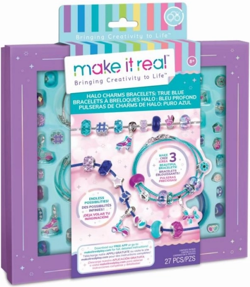 Découvrez un divertissement créatif avec le kit de fabrication de bracelets Make It Real – Halo Charms True Blue. Réalisez jusqu’à trois bracelets originaux dans des tons bleus et violets avec des breloques tendance et des perles. Idéal pour développer la motricité fine, la créativité et un style unique. Convient à partir de 8 ans.