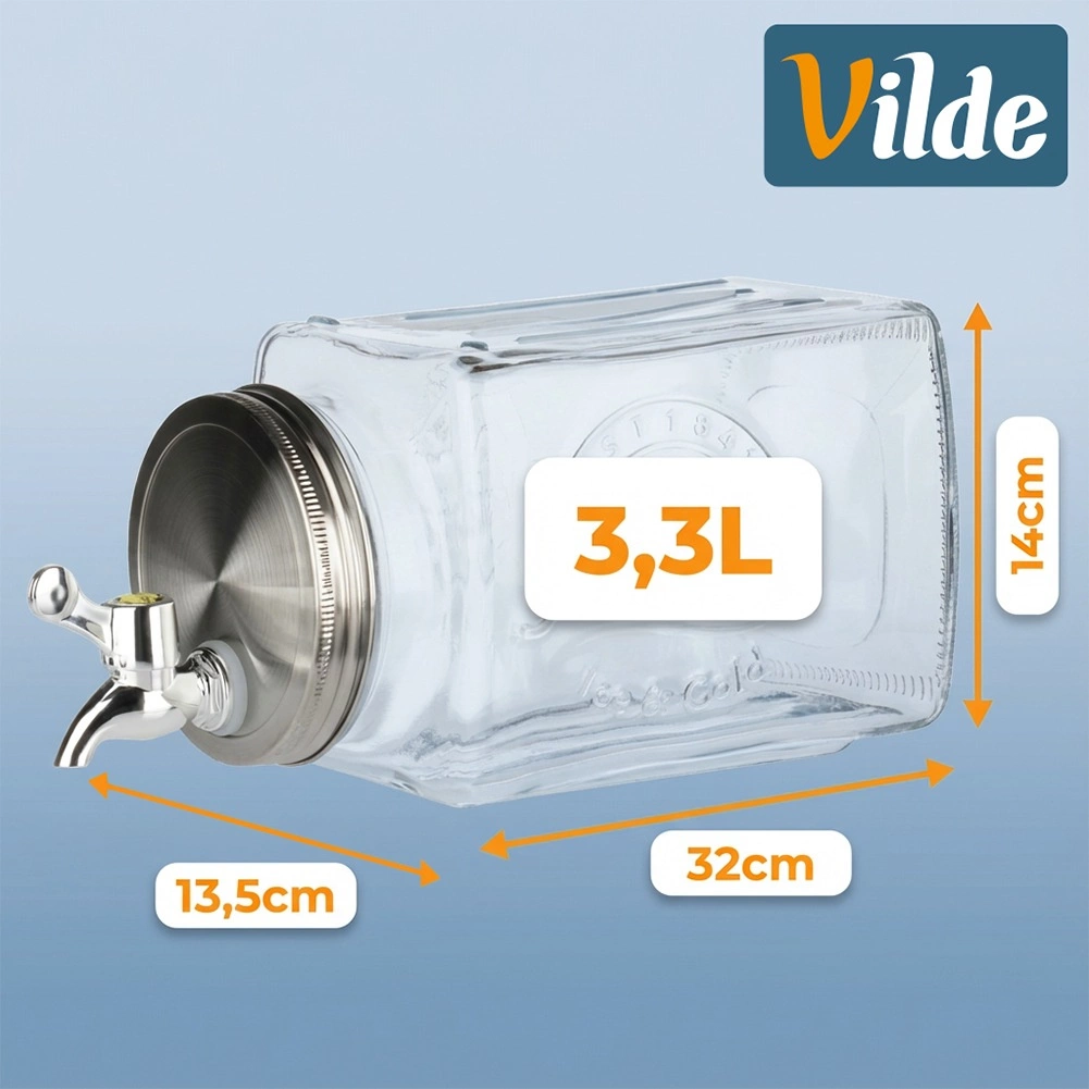 Le robinet permet un service confortable et fluide sans éclaboussures inutiles – idéal pour les garden-parties, les fêtes de famille et l’usage quotidien à la maison, au café ou au bar. Le distributeur est parfait pour les limonades, eaux aux fruits, thés glacés, jus et punch. Produit original de la marque Vilde fabriqué selon les normes européennes.