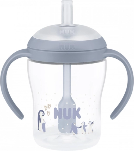 Biberon d’apprentissage NUK Perfect Match avec paille en silicone 150 ml, pingouin
