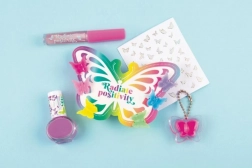 Le coffret cosmétique Butterfly Dreams apporte magie et plaisir à votre routine beauté. Ce produit est idéal pour toutes les filles qui veulent ressembler à des princesses papillon. Le coffret comprend différents accessoires et produits :