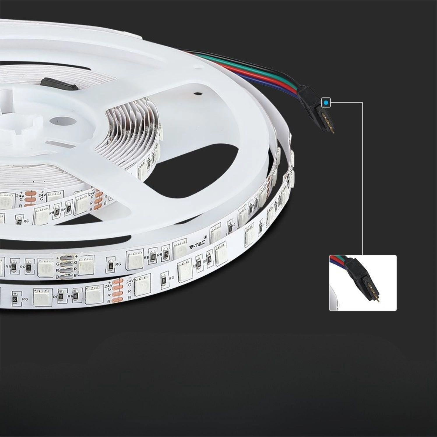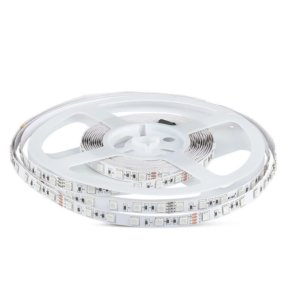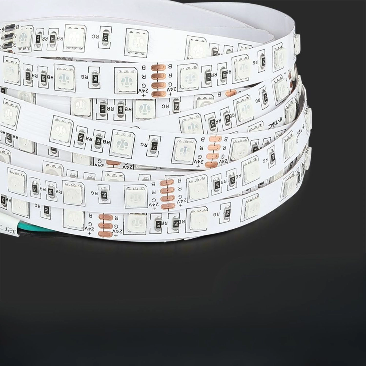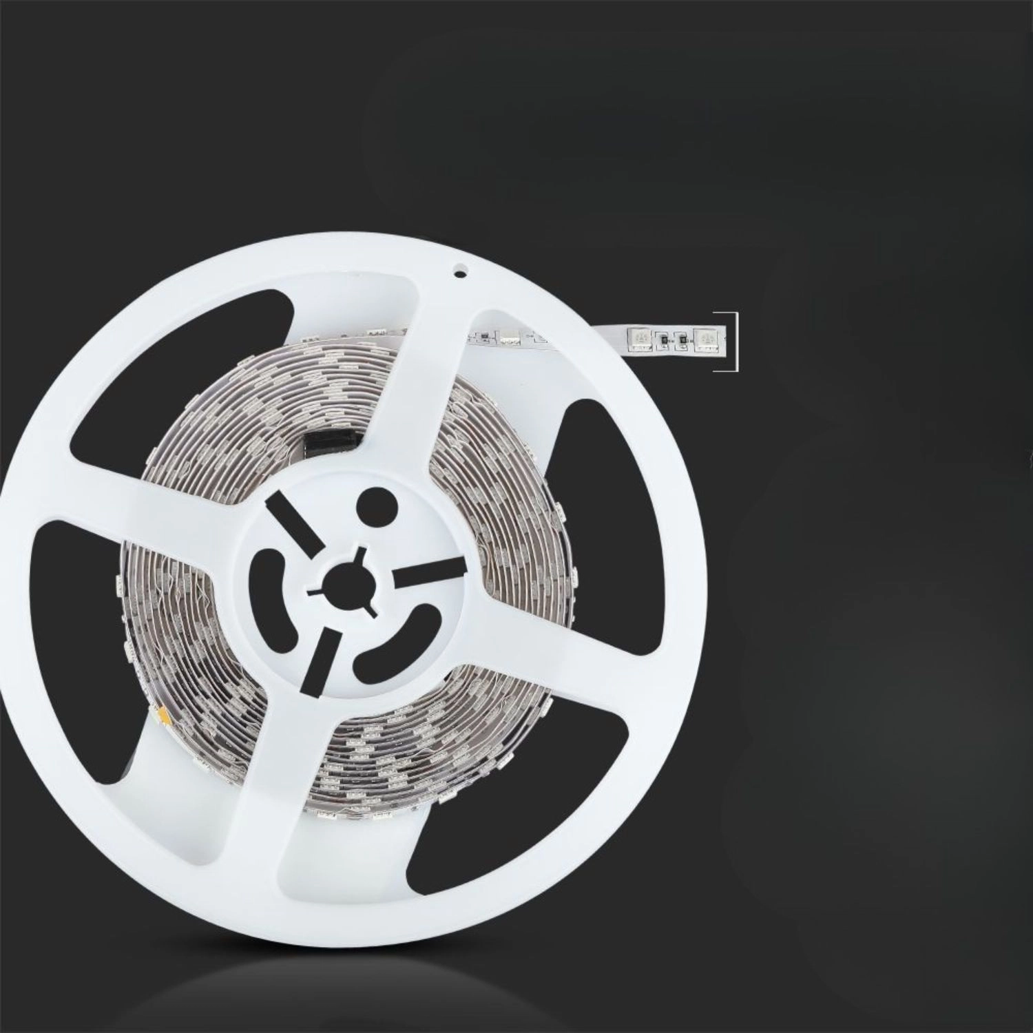 Ruban LED VTAC flexible avec une puissance de 10 W, une température de couleur de 4000 K (blanc neutre) et une alimentation 24 V, idéal pour un éclairage d’accentuation moderne comme pour un éclairage de travail. En longueur de 5 m, il offre une lumière uniforme, une installation facile et un fonctionnement fiable en environnement sec IP20.