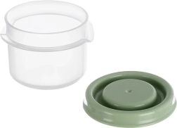 Pratique set de quatre petits gobelets de 50 ml avec corps transparent et couvercles verts, idéal pour sauces, dips, épices et herbes. Grâce aux couvercles hermétiques, le contenu reste frais et sans odeurs; ils sont compatibles congélateur, réfrigérateur et micro-ondes (sans couvercle) et peuvent être lavés au lave-vaisselle.