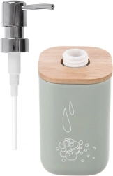 Distributeur élégant pour savon liquide ou liquide vaisselle d’une capacité de 350 ml, idéal pour le lavabo comme pour l’évier. Le corps en pierre synthétique de qualité a l’apparence de la céramique, complété par un couvercle en bambou et une pompe brillante pour un dosage confortable.