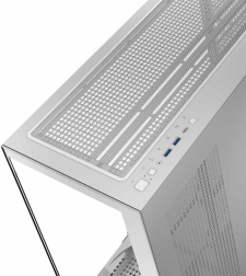 Élégant boîtier PC blanc VOLCANO Stellar Midi NF au design « aquarium » en verre trempé offrant un excellent airflow, la prise en charge du watercooling 360 mm, un montage GPU vertical et un I/O moderne avec USB‑C. Grâce à la position de cadre rabattable et réglable pour ventilateur 120 mm, l’air frais est dirigé directement vers la carte graphique, assurant des températures plus basses et un fonctionnement plus silencieux. Livré sans ventilateurs préinstallés pour une liberté totale de configuration.