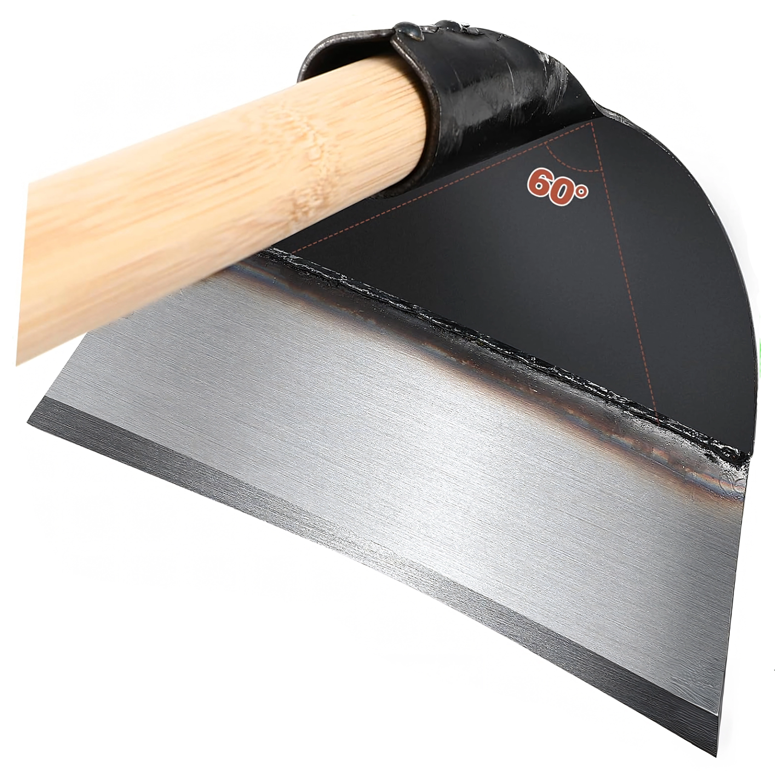 Tête de travail en acier forgé d’une épaisseur de 0,3 cm, résistant aux usages intensifs et offrant une coupe nette lors du désherbage et de l’ameublissement du sol.