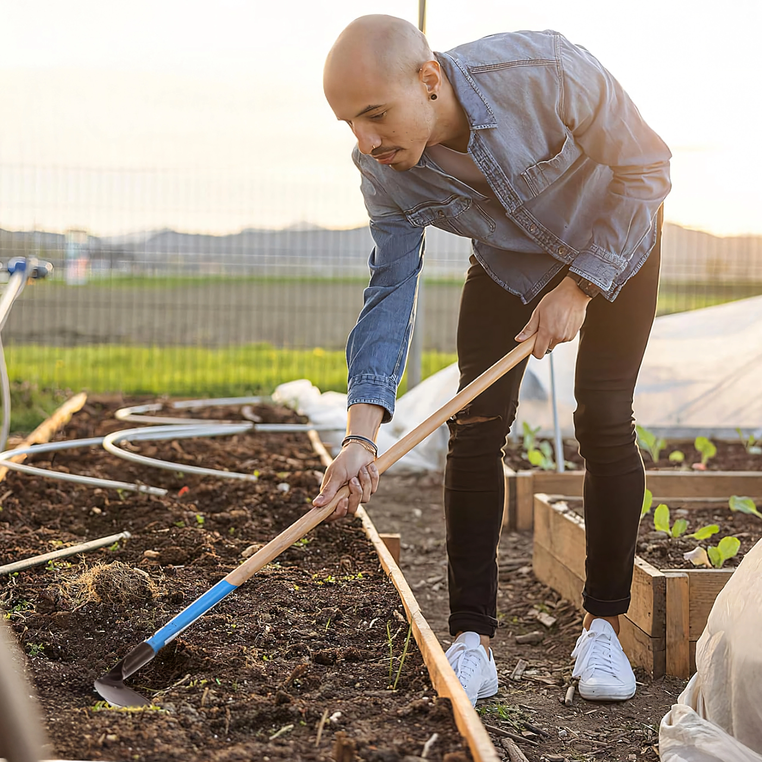 La partie de travail de 18 × 14 cm permet un enlèvement rapide des mauvaises herbes ainsi qu’un étalement et un façonnage efficaces du sol. L’emmanchement est prévu pour un manche de 3,2 cm de diamètre (manche non inclus), vous permettant de choisir la longueur et le type de poignée selon vos préférences.
