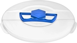 couvercle en plastique semi-transparent (blanc) avec poignée bleue rabattable