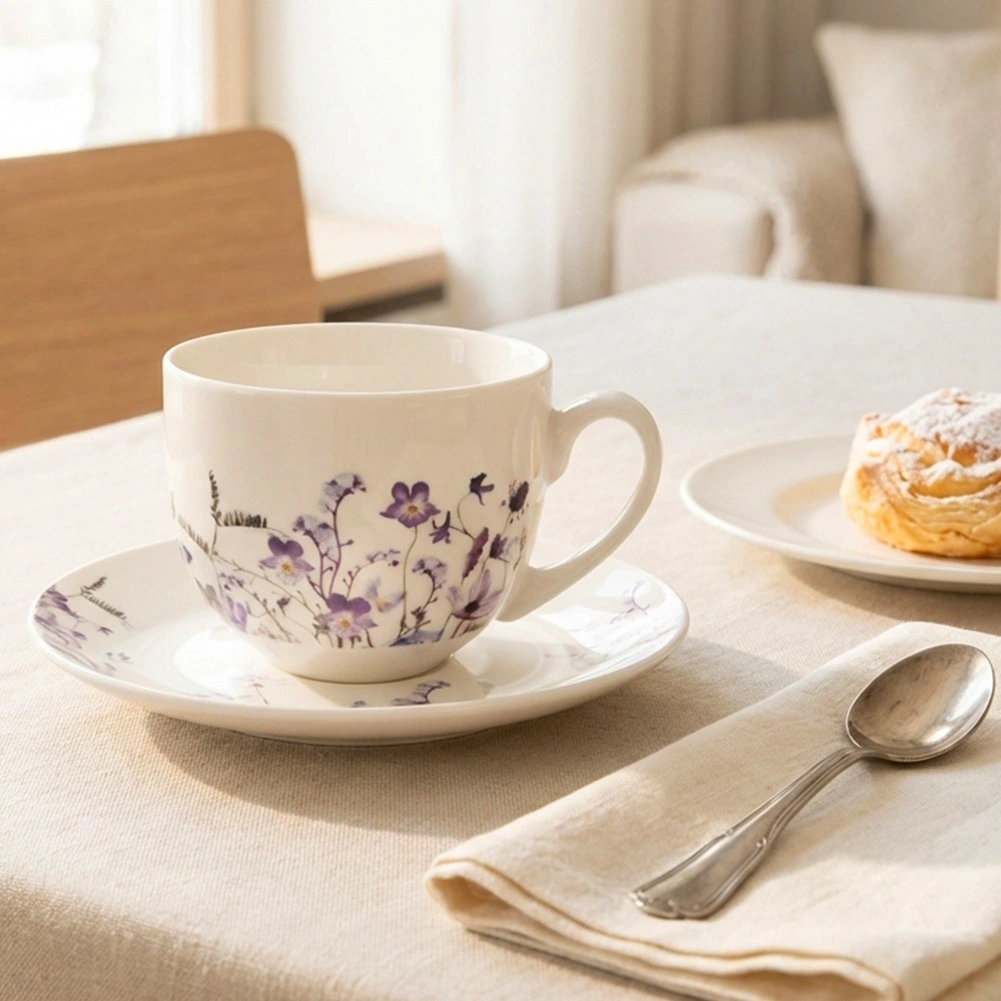Sa forme pratique avec une anse ergonomique assure une dégustation confortable, tandis que la soucoupe offre une base stable et élégante. La porcelaine de qualité résiste à un usage quotidien et permet un entretien facile au lave-vaisselle ainsi qu’un réchauffage rapide au micro-ondes.