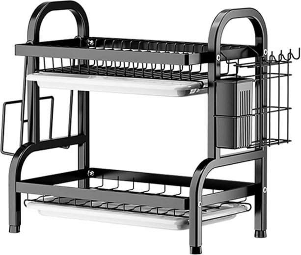 Grand égouttoir à vaisselle à deux niveaux, noir