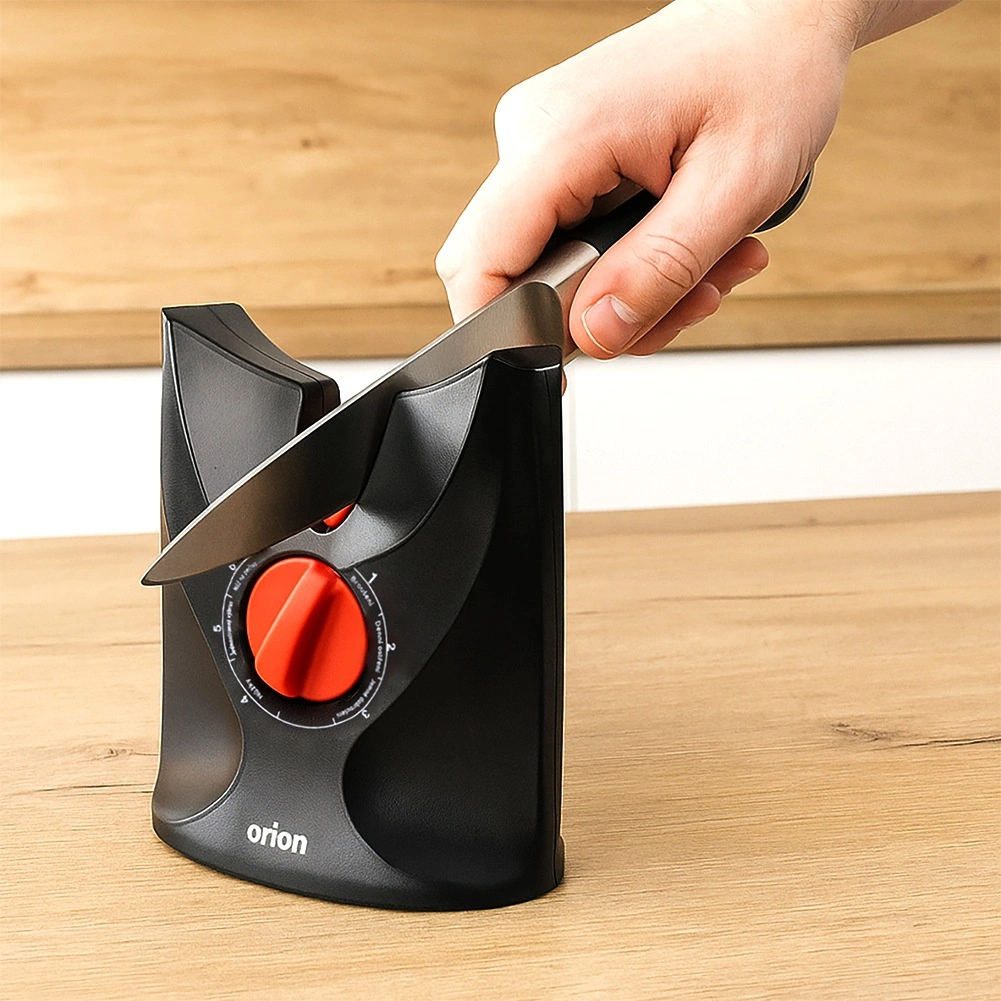 Aiguiseur de couteaux compact 6‑en‑1 pour une restauration rapide et précise du tranchant des couteaux de cuisine et des ciseaux. Il offre six niveaux d’affûtage, un réglage pratique des modes via une molette rotative et une base antidérapante stable pour un travail en toute sécurité. La combinaison de lames en carbure et en céramique assure un affûtage grossier et fin efficace pour différents types de lames.
