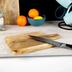 Alliez fonctionnalité et design : la planche en bois de manguier au style rustique est un excellent choix pour la préparation comme pour la présentation des plats. Le veinage naturel du bois et les bords doucement arrondis garantissent un usage confortable et sûr, tandis que la poignée intégrée avec trou facilite le transport et la suspension.