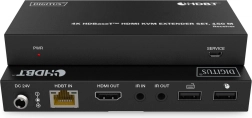 Le récepteur est équipé de deux ports USB 1.1 pour connecter une souris et un clavier, vous permettant de contrôler confortablement l’ordinateur source directement à l’affichage. La transmission IR bidirectionnelle permet de piloter les appareils depuis les deux extrémités de la liaison. La gestion EDID (copie depuis l’afficheur ou standard 1080p/2 canaux) garantit une compatibilité sans faille avec divers écrans.